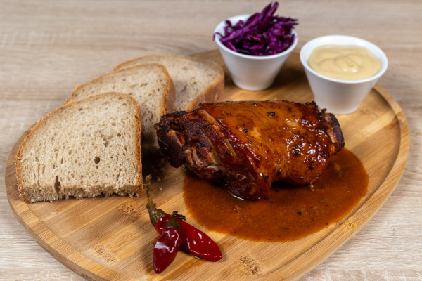 podávané s červeným křenovým zelím, hořčicí a chlebem